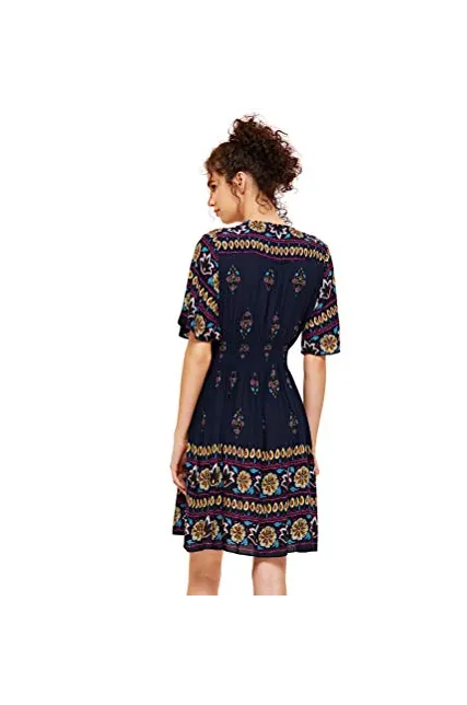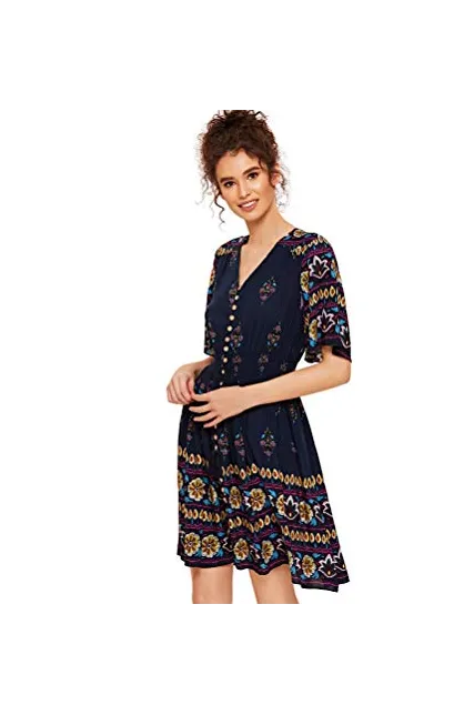 - V-Neck, Half Sleeve/ Short Sleeve,Floral Print