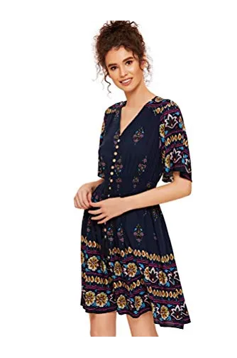 - V-Neck, Half Sleeve/ Short Sleeve,Floral Print