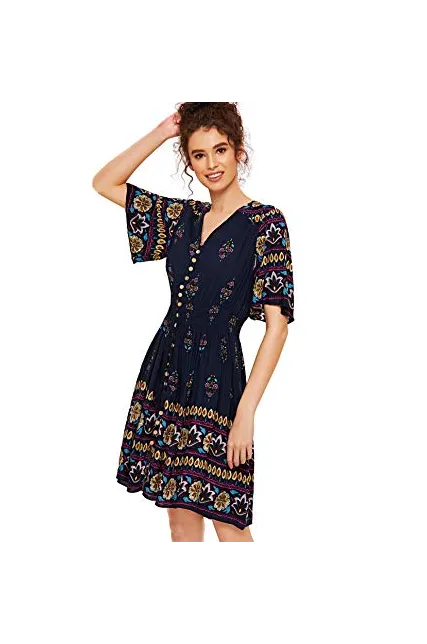- V-Neck, Half Sleeve/ Short Sleeve,Floral Print