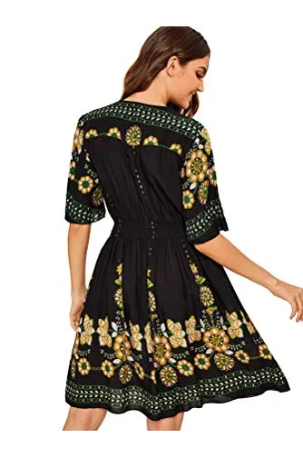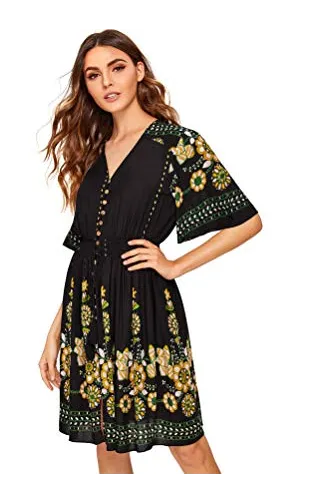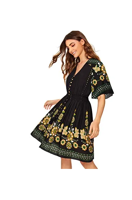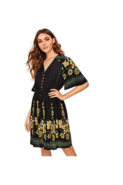 - V-Neck, Half Sleeve/ Short Sleeve,Floral Print
