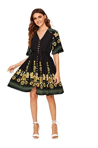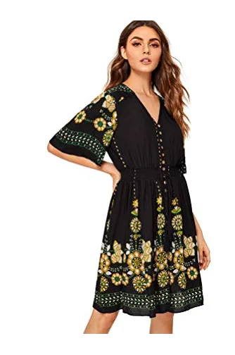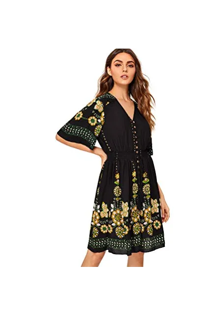 - V-Neck, Half Sleeve/ Short Sleeve,Floral Print