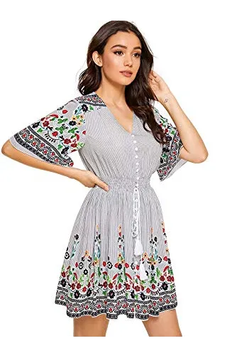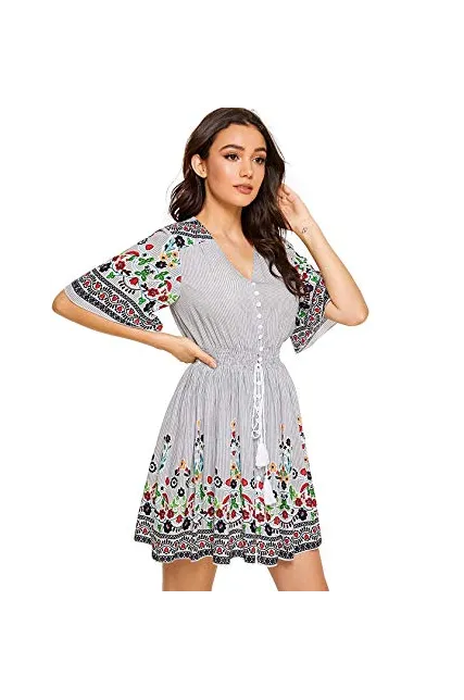 - V-Neck, Half Sleeve/ Short Sleeve,Floral Print