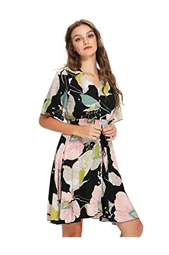 - V-Neck, Half Sleeve/ Short Sleeve,Floral Print