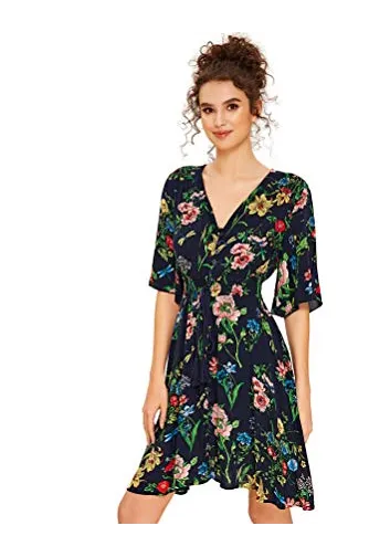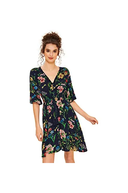 - V-Neck, Half Sleeve/ Short Sleeve,Floral Print