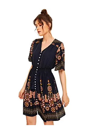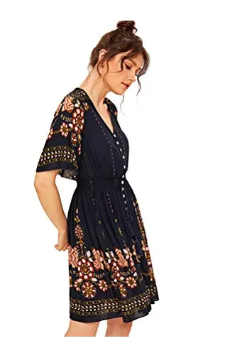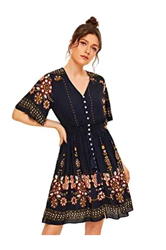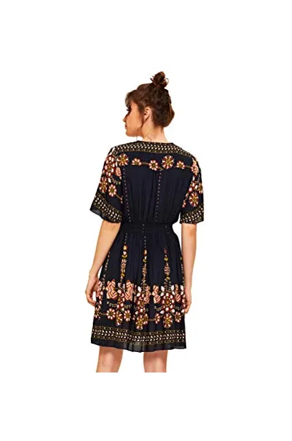 - V-Neck, Half Sleeve/ Short Sleeve,Floral Print