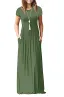 - Features: Casual Style,Two Side Pockets,Short Sleeves,Round Neck,Floor Length,Elastic at Waist,Not lined,Maxi Dresses