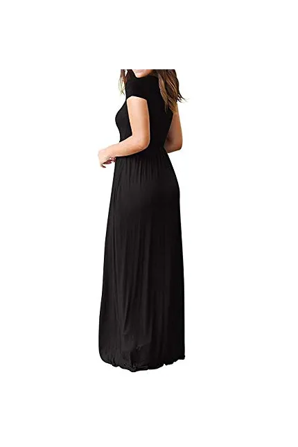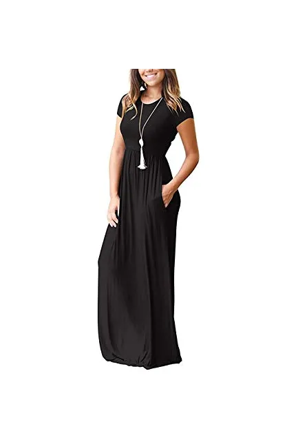 - Features: Casual Style,Two Side Pockets,Short Sleeves,Round Neck,Floor Length,Elastic at Waist,Not lined,Maxi Dresses