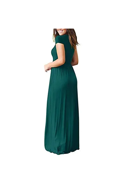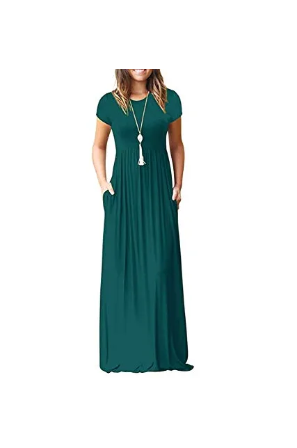 - Features: Casual Style,Two Side Pockets,Short Sleeves,Round Neck,Floor Length,Elastic at Waist,Not lined,Maxi Dresses