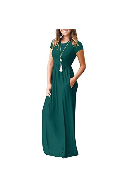 - Features: Casual Style,Two Side Pockets,Short Sleeves,Round Neck,Floor Length,Elastic at Waist,Not lined,Maxi Dresses