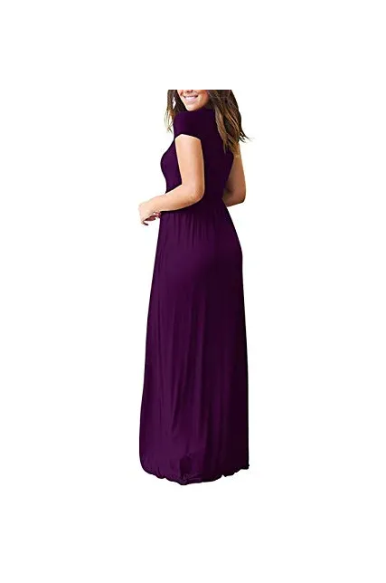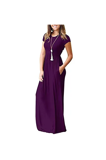 - Features: Casual Style,Two Side Pockets,Short Sleeves,Round Neck,Floor Length,Elastic at Waist,Not lined,Maxi Dresses