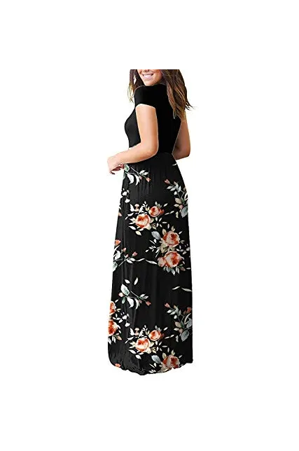 - Features: Casual Style,Two Side Pockets,Short Sleeves,Round Neck,Floor Length,Elastic at Waist,Not lined,Maxi Dresses