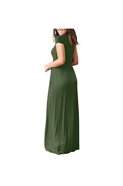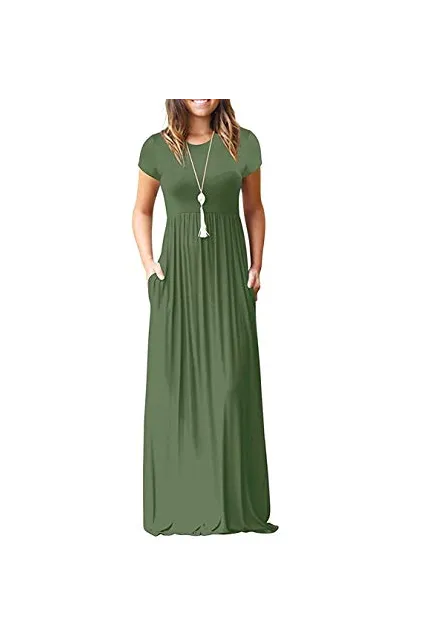 - Features: Casual Style,Two Side Pockets,Short Sleeves,Round Neck,Floor Length,Elastic at Waist,Not lined,Maxi Dresses