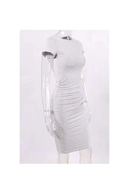 - Features:knee length,short sleeve,long sleeve,round neck,side ruched,regular thick