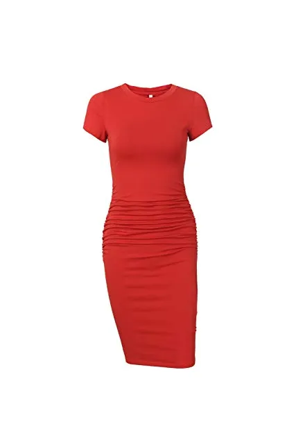 - Features:knee length,short sleeve,long sleeve,round neck,side ruched,regular thick