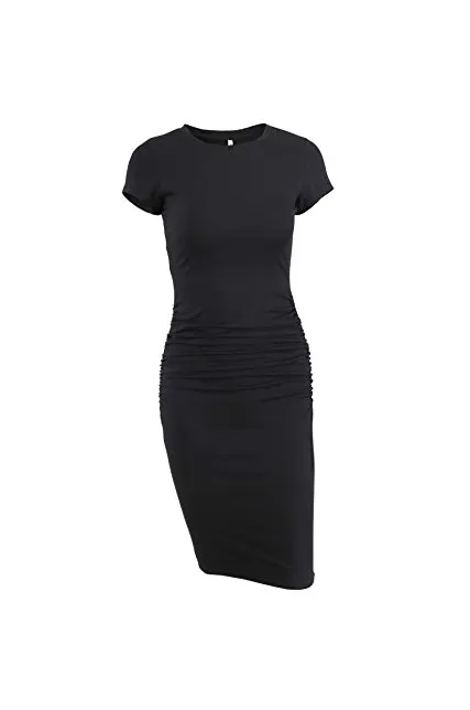- Features:knee length,short sleeve,long sleeve,round neck,side ruched,regular thick