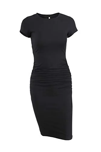 - Features:knee length,short sleeve,long sleeve,round neck,side ruched,regular thick