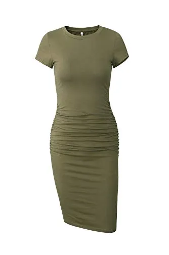 - Features:knee length,short sleeve,long sleeve,round neck,side ruched,regular thick