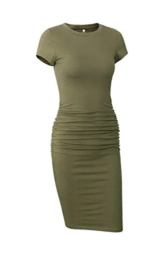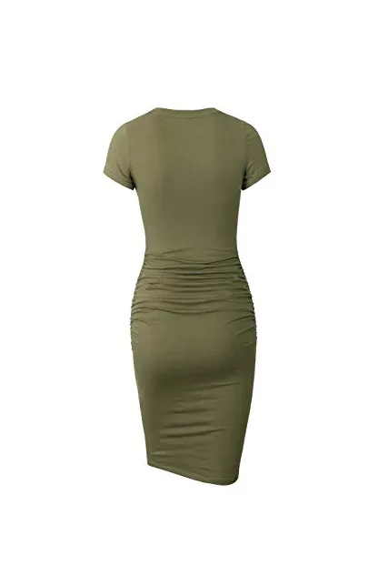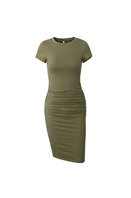 - Features:knee length,short sleeve,long sleeve,round neck,side ruched,regular thick