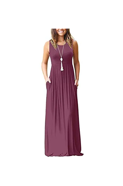 - Features: Sleeveless simple maxi dress with round neck,elastic in the waist to make a comfortable fit.You can throw on a jacket easily when it's too chilly in the fall