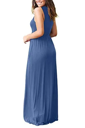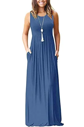 - Features: Sleeveless simple maxi dress with round neck,elastic in the waist to make a comfortable fit.You can throw on a jacket easily when it's too chilly in the fall
