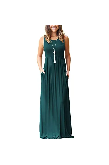 - Features: Sleeveless simple maxi dress with round neck,elastic in the waist to make a comfortable fit.You can throw on a jacket easily when it's too chilly in the fall