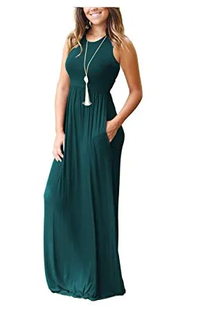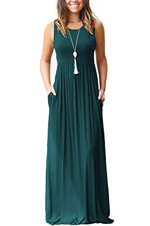 - Features: Sleeveless simple maxi dress with round neck,elastic in the waist to make a comfortable fit.You can throw on a jacket easily when it's too chilly in the fall
