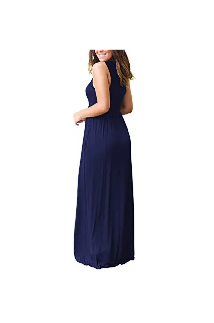 - Features: Sleeveless simple maxi dress with round neck,elastic in the waist to make a comfortable fit.You can throw on a jacket easily when it's too chilly in the fall