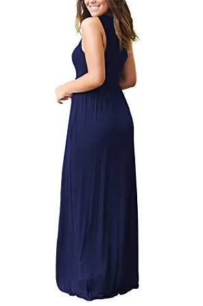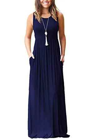 - Features: Sleeveless simple maxi dress with round neck,elastic in the waist to make a comfortable fit.You can throw on a jacket easily when it's too chilly in the fall