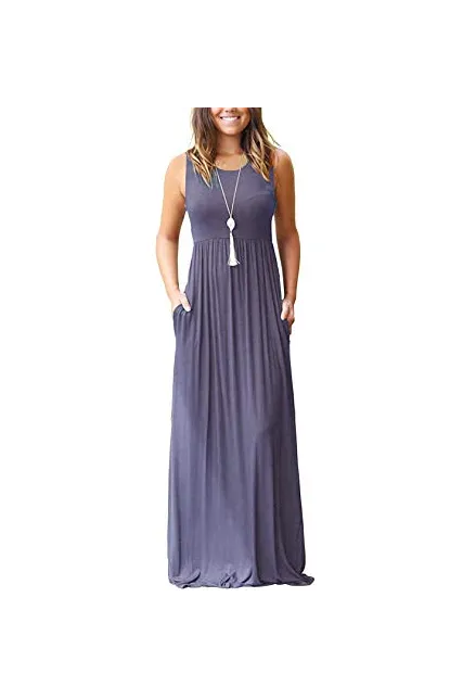 - Features: Sleeveless simple maxi dress with round neck,elastic in the waist to make a comfortable fit.You can throw on a jacket easily when it's too chilly in the fall