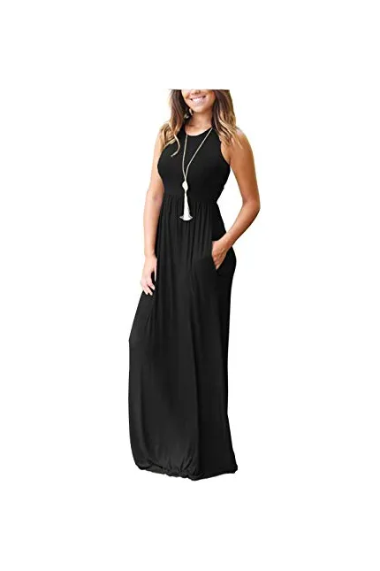 - Features: Sleeveless simple maxi dress with round neck,elastic in the waist to make a comfortable fit.You can throw on a jacket easily when it's too chilly in the fall