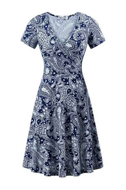 MSBASIC Women's Deep V Neck Short Sleeve Unique Cross Wrap Casual Flared Midi Dress