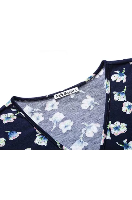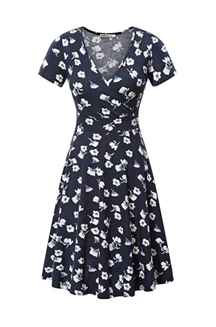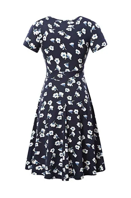 MSBASIC Women's Deep V Neck Short Sleeve Unique Cross Wrap Casual Flared Midi Dress