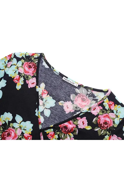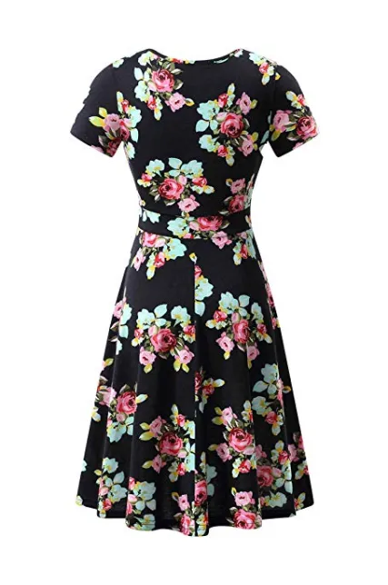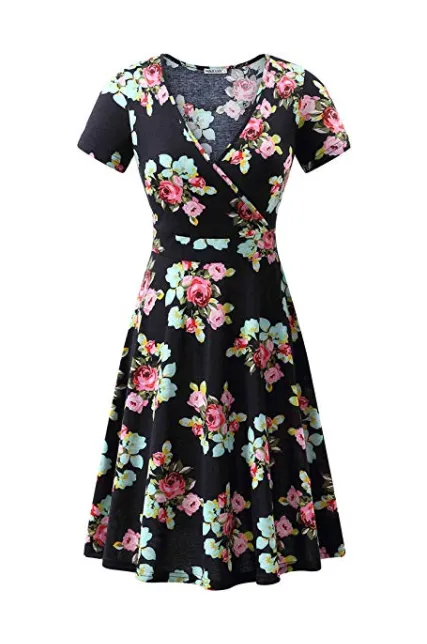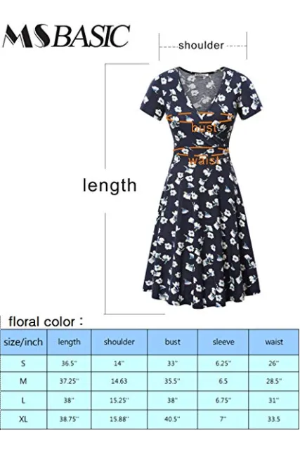 MSBASIC Women's Deep V Neck Short Sleeve Unique Cross Wrap Casual Flared Midi Dress