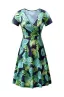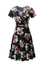 - Features Short Sleeves,Crossover V-Neck,Front Pleated with Unique Look,Elegant Prom Dress,Knee-length,Floral