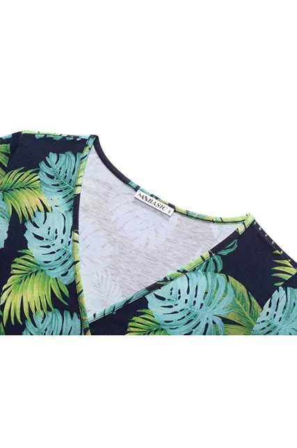 MSBASIC Women's Deep V Neck Short Sleeve Unique Cross Wrap Casual Flared Midi Dress