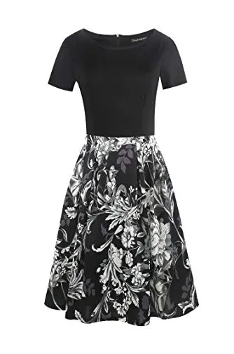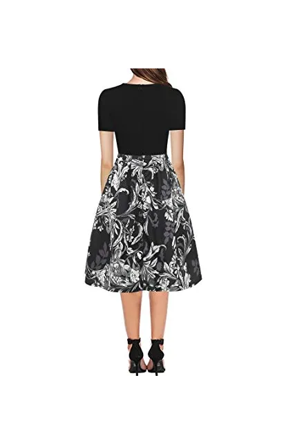 - Women's Vintage Patchwork Pockets Puffy Swing Casual Party Dress O-Neck,Ball Gown,Fit and Flare.This dress have pockets in side.