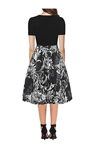 - Women's Vintage Patchwork Pockets Puffy Swing Casual Party Dress O-Neck,Ball Gown,Fit and Flare.This dress have pockets in side.
