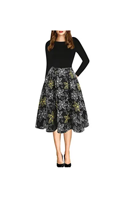 - Oxiuly Women's Vintage 1950's Classic Plaid Stripe Floral Flare Polka Dot Patchwork with Pockets Hepburn Style Cocktail Party Swing Dress Long Sleeve Short Sleeve Half Sleeve Scoop Neck Round Neck Stretchy Cotton Puffy Casual Work Businees Church Tea Midi Knee-length A-lien Sunner Fall Autumn Elegant Chic Casual Dress Dresses