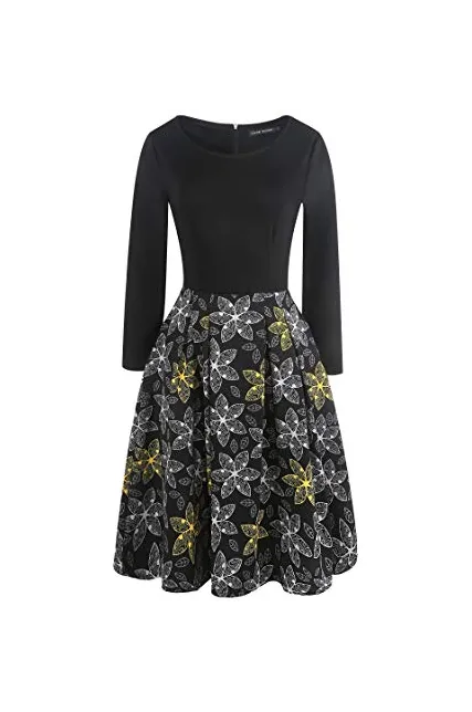 - Women's Vintage Patchwork Pockets Puffy Swing Casual Party Dress O-Neck,Ball Gown,Fit and Flare.This dress have pockets in side.