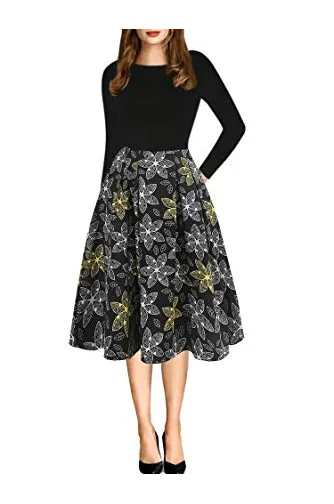 - Oxiuly Women's Vintage 1950's Classic Plaid Stripe Floral Flare Polka Dot Patchwork with Pockets Hepburn Style Cocktail Party Swing Dress Long Sleeve Short Sleeve Half Sleeve Scoop Neck Round Neck Stretchy Cotton Puffy Casual Work Businees Church Tea Midi Knee-length A-lien Sunner Fall Autumn Elegant Chic Casual Dress Dresses