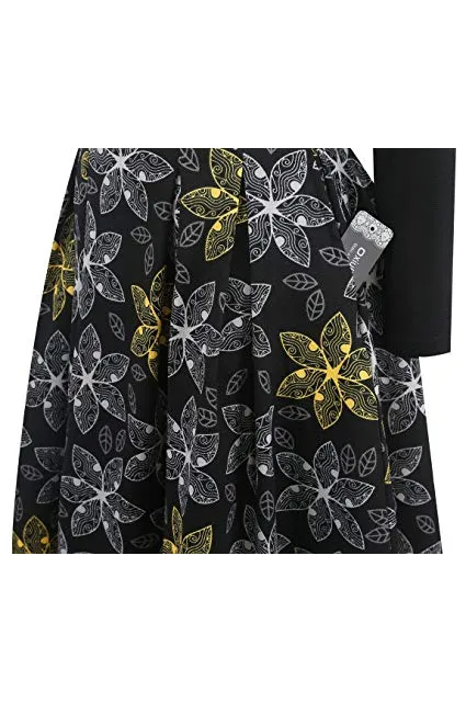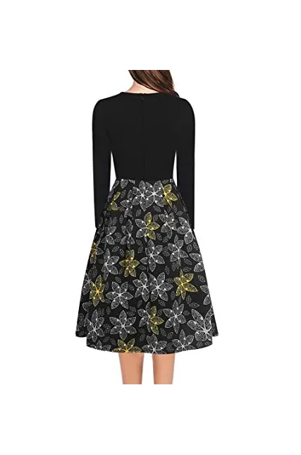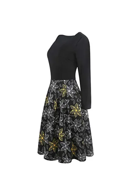 - Women's Vintage Patchwork Pockets Puffy Swing Casual Party Dress O-Neck,Ball Gown,Fit and Flare.This dress have pockets in side.