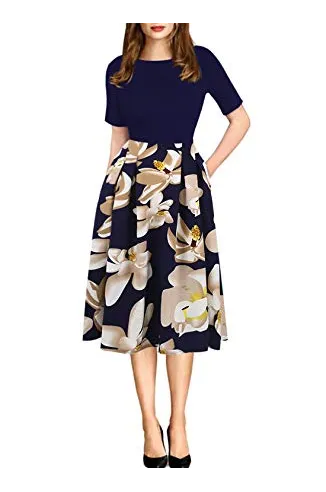 - Oxiuly Women's Vintage 1950's Classic Plaid Stripe Floral Flare Polka Dot Patchwork with Pockets Hepburn Style Cocktail Party Swing Dress Long Sleeve Short Sleeve Half Sleeve Scoop Neck Round Neck Stretchy Cotton Puffy Casual Work Businees Church Tea Midi Knee-length A-lien Sunner Fall Autumn Elegant Chic Casual Dress Dresses