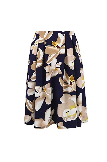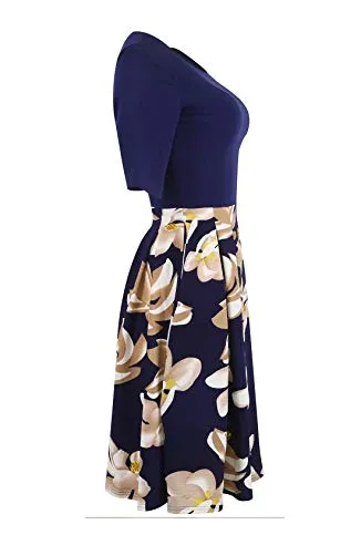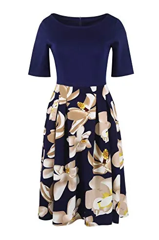 - Women's Vintage Patchwork Pockets Puffy Swing Casual Party Dress O-Neck,Ball Gown,Fit and Flare.This dress have pockets in side.