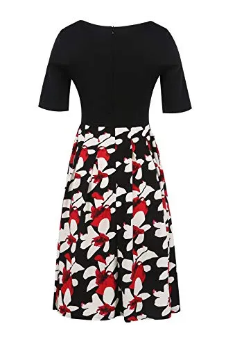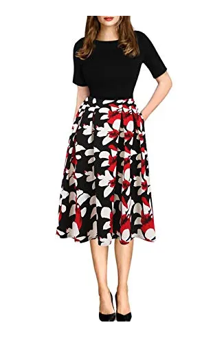 - Oxiuly Women's Vintage 1950's Classic Plaid Stripe Floral Flare Polka Dot Patchwork with Pockets Hepburn Style Cocktail Party Swing Dress Long Sleeve Short Sleeve Half Sleeve Scoop Neck Round Neck Stretchy Cotton Puffy Casual Work Businees Church Tea Midi Knee-length A-lien Sunner Fall Autumn Elegant Chic Casual Dress Dresses
