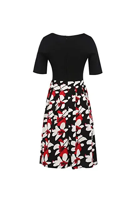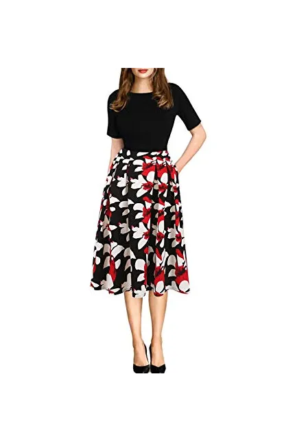 - Women's Vintage Patchwork Pockets Puffy Swing Casual Party Dress O-Neck,Ball Gown,Fit and Flare.This dress have pockets in side.
