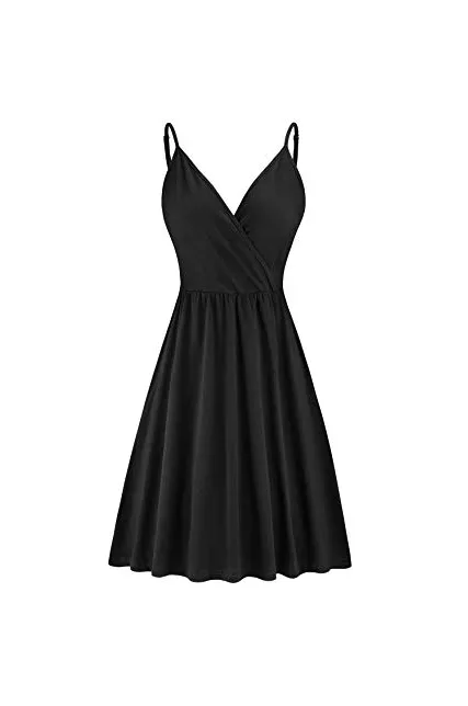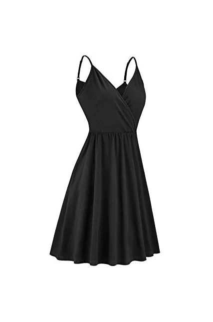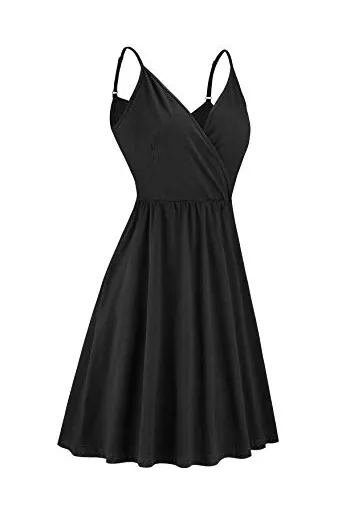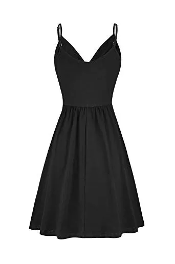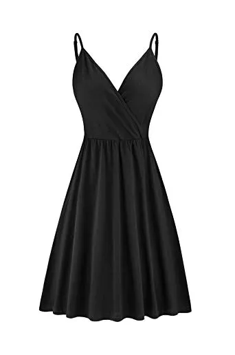 STYLEWORD Women's V Neck Floral Spaghetti Strap Summer Casual Swing Dress with Pocket