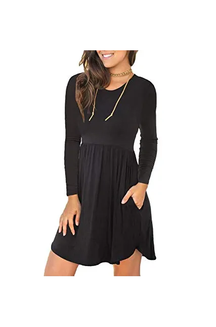 Unbranded* Women's Long Sleeve Loose Plain Dresses Casual Short Dress with Pockets