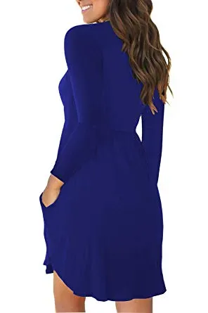 Unbranded* Women's Long Sleeve Loose Plain Dresses Casual Short Dress with Pockets