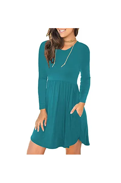 Unbranded* Women's Long Sleeve Loose Plain Dresses Casual Short Dress with Pockets