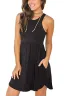 - Features: round neckline (no necklace included),racerback sleeveless,elastic band at waist,two side-seam pockets which deep enough for a card or a lip balm,above knee length,irregular hem.